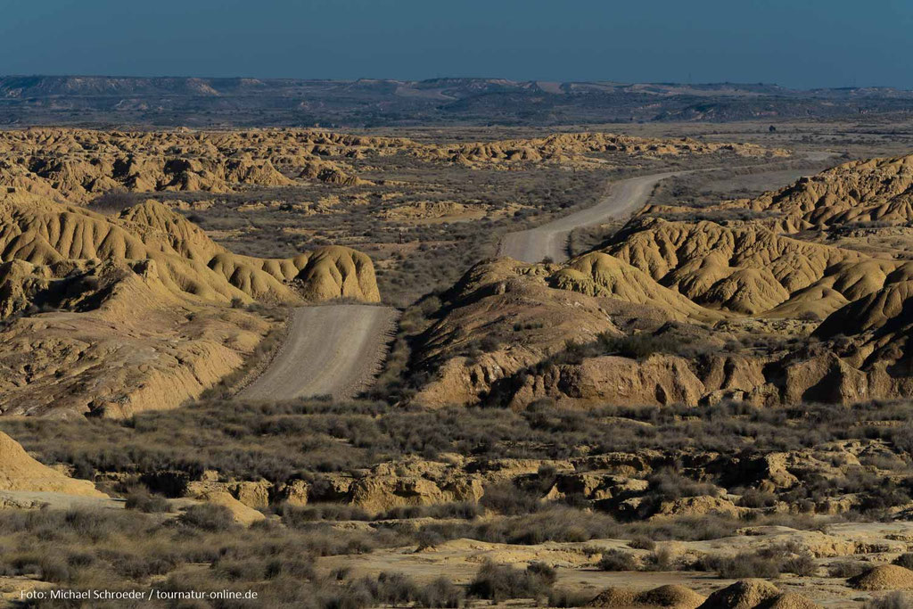 Besucher müssen den Naturpark vor Sonnenuntergang verlassen. Übernachten im Park ist leider ebenfalls verboten; aber nur etwas 5 Fahrminuten entfernt gibt es in Arguedas am Rande der Wüste einen netten Stellplatz.