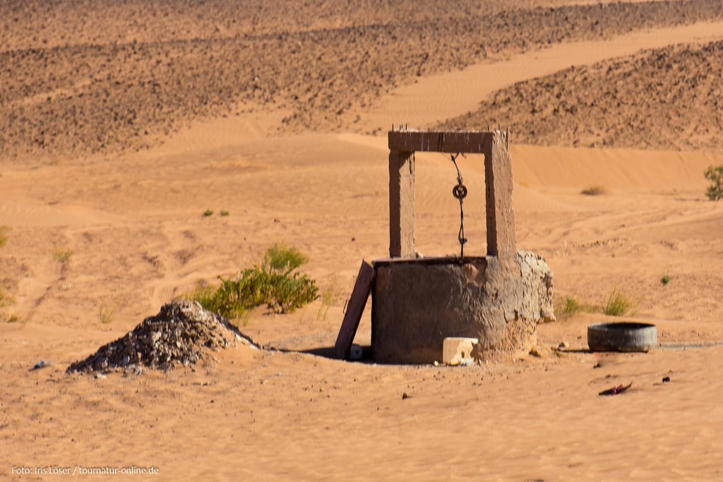 Am Nachmittag treffen wir uns in der Oasenstadt Foum-Zguid, um unsere Autos vorzubereiten. Unsere Trinkwasservorräte haben wir bereits am Morgen in Tata aufgefüllt. Auch wenn Dennis die Route durch die Wüste schon einmal gefahren ist...man weiß ja nie, was kommt.