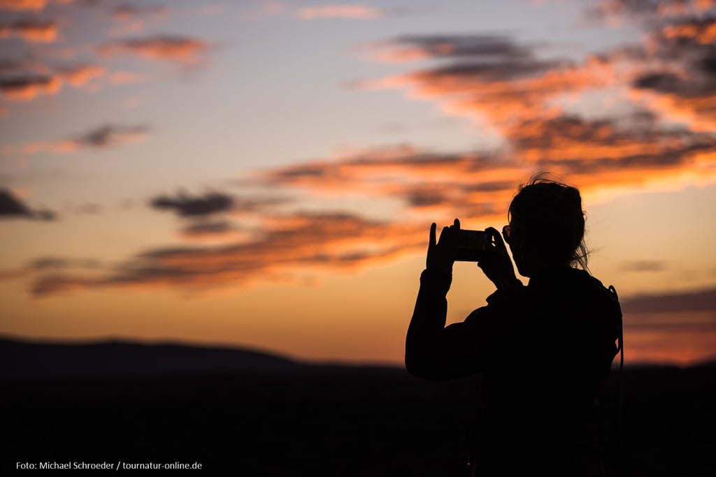 Trotzdem oder gerade deshalb, wir haben eine ruhige Nacht und auch der Sonnenaufgang in der Wüste ist ein unvergessliches Erlebnis. Die Nacht war eiskalt, aber die ersten Sonnenstrahlen wärmen uns und die Autos sofort auf. Die Hunde, Adi und Ciara, dürfen toben. Wir Menschen lassen den Tag mit dem Kaffeebecher in der Hand auf uns zukommen.