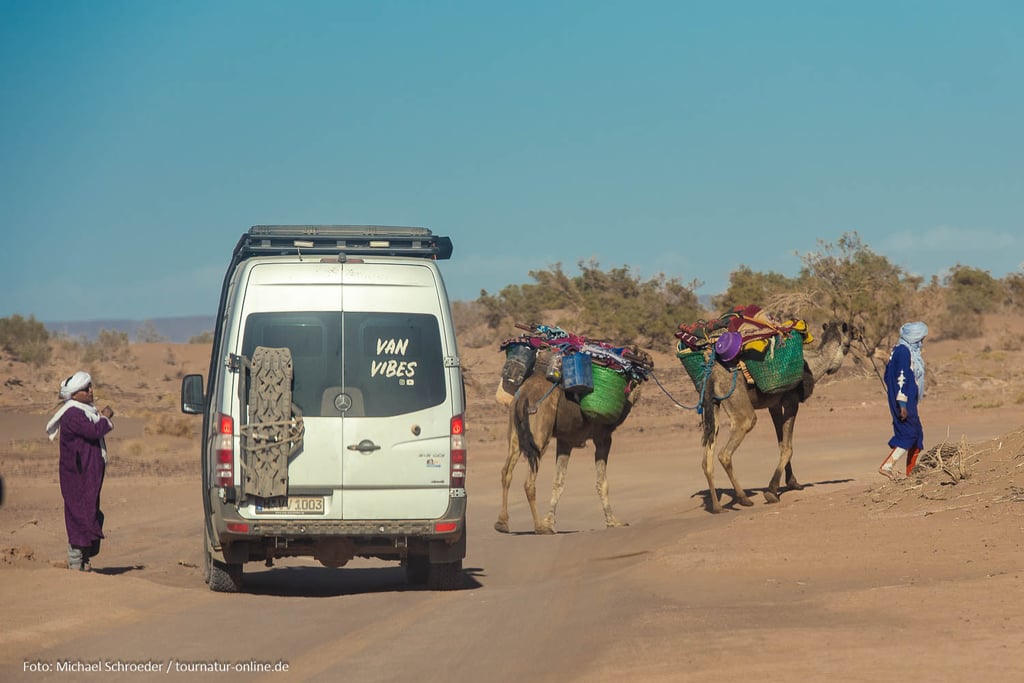 Was wäre eine Reise nach Marokko ohne eine Fahrt durch die Wüste. Da wir bisher aber noch keine echte Off-Road Erfahrung gesammelt haben, wollen wir ein solches Unternehmen nicht alleine in Angriff nehmen. Kurz vor Tata lernen wir aber auf einem Campingplatz Dennis, Phil und Nadja kennen, die schon seit einigen Wochen mit ihren 4x4 Sprintern in Marokko unterwegs sind und die als nächste Reiseetappe die Wüste Erg Chegaga von Foum-Zguid nach Mhamid off-road durchqueren wollen.