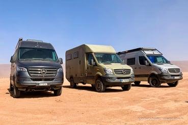 - Mitte: Michael und Iris: 316 CDI Autark mit GFK-Kabine von Woelcke, 4-Zylinder mit Standard-Allrad und BF-Goodrich AT Bereifung