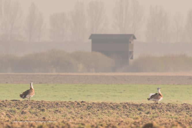 Im Fiener Bruch gibt es wohl einen offiziellen Beobachtungsturm, von dem man gute Chancen haben soll, Großtrappen zu sehen. Der Turm liegt – wie alle erlaubten Beobachtungspunkte – am Rand der Kernzone: