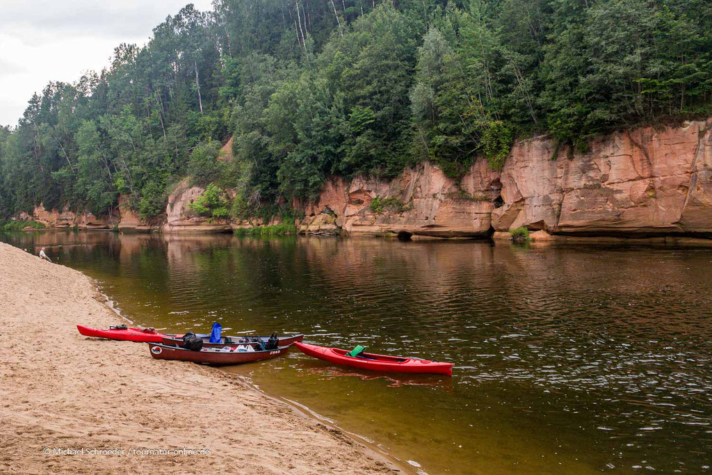 gleiten Kanus und Flöße mit Parkbesuchern vorbei. Uns am Ufer wird zugewunken. Es ist ein gemütliches Nebeneinander - wie scheinbar überall im Baltikum.