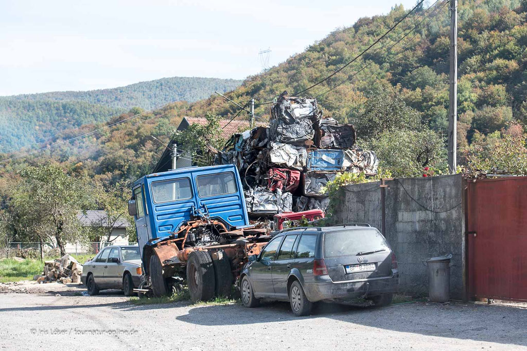 Anschließend folgen wir weiter der E65 Richtung albanische Grenze. Wir kommen hier in einen ärmlicheren, authentischen Teil des Landes. Immer mehr Müll liegt auf der Straße, es gibt zwar viele Müllcontainer, aber die sehen so aus, als ob sie schon lange nicht mehr geleert wurden.