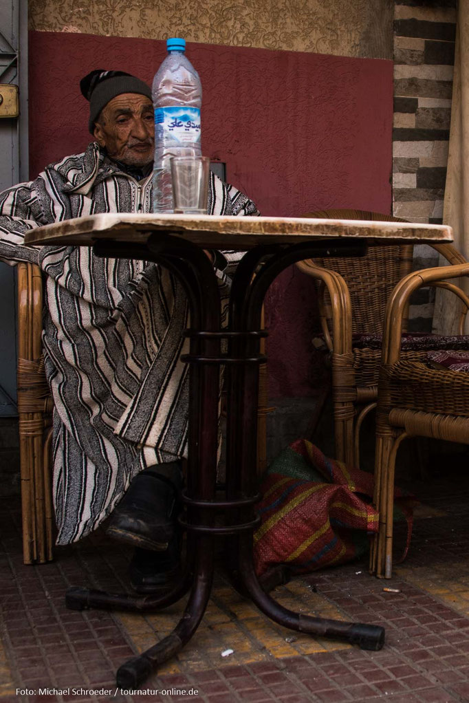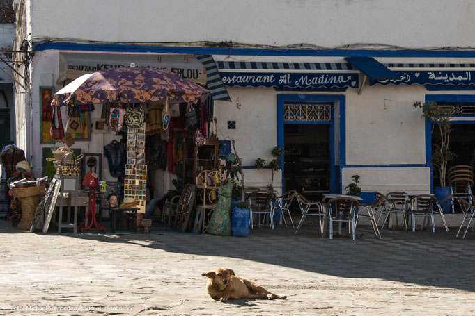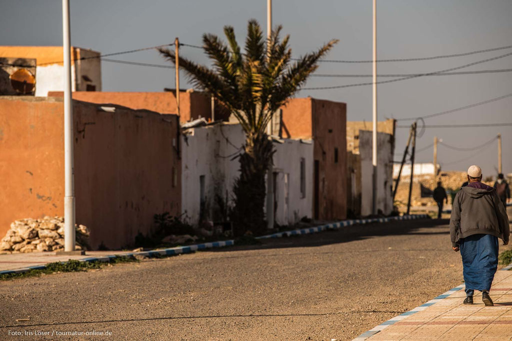 Ein Spaziergang führt uns oberhalb der Laguna liegenden Ort. Adi ist natürlich wieder dabei und erneut sind die Einheimischen, vor allem aber die Kinder, uns und ihm gegenüber freundlich. Wir dürfen den Hund sogar mit auf die Terrasse eines Cafés nehmen, um wieder mal einen Nous Nous (marokkanischer Milchkaffee) zu trinken. Auch mit den Straßenhunden gibt es keine Schwierigkeiten. Am kleinen Hafen bieten Fischer für den Bootstouren zur Vogelbeobachtung an. Leider macht uns das Wetter am nächsten Tag aber einen Strich durch die Rechnung - es ist zu diesig zum Fotografieren.