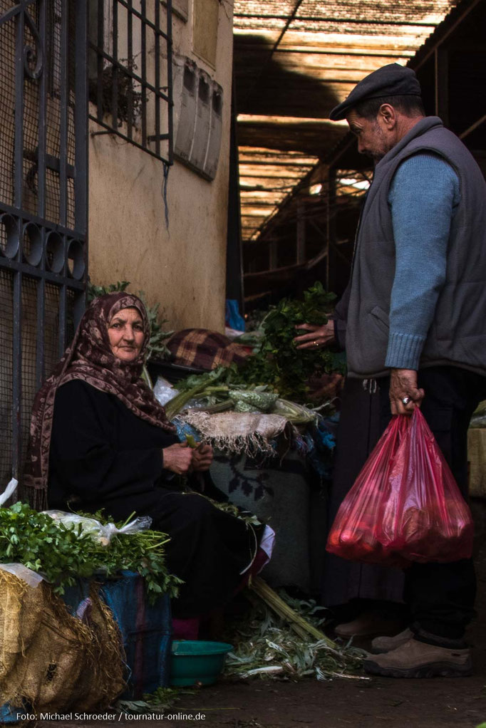 Am zweiten Tag machen wir uns gegen Abend zusammen mit Sabine und Detlef, die mit ihrem Bimobil neben uns auf dem Campingplatz stehen, auf in die Altstadt. Hier und in den angrenzenden Straßen mit ihren kleinen Läden und Lokalen ist richtig viel los. Alte und junge Menschen, meist traditionell gekleidet, die Frauen mit Kopftuch, aber auch europäisch gekleidete junge Leute, junge Frauen ohne Kopftuch und im kurzen Rock und eben auch einige ausländische Touristinnen - alles mischt sich kunterbunt durcheinander.