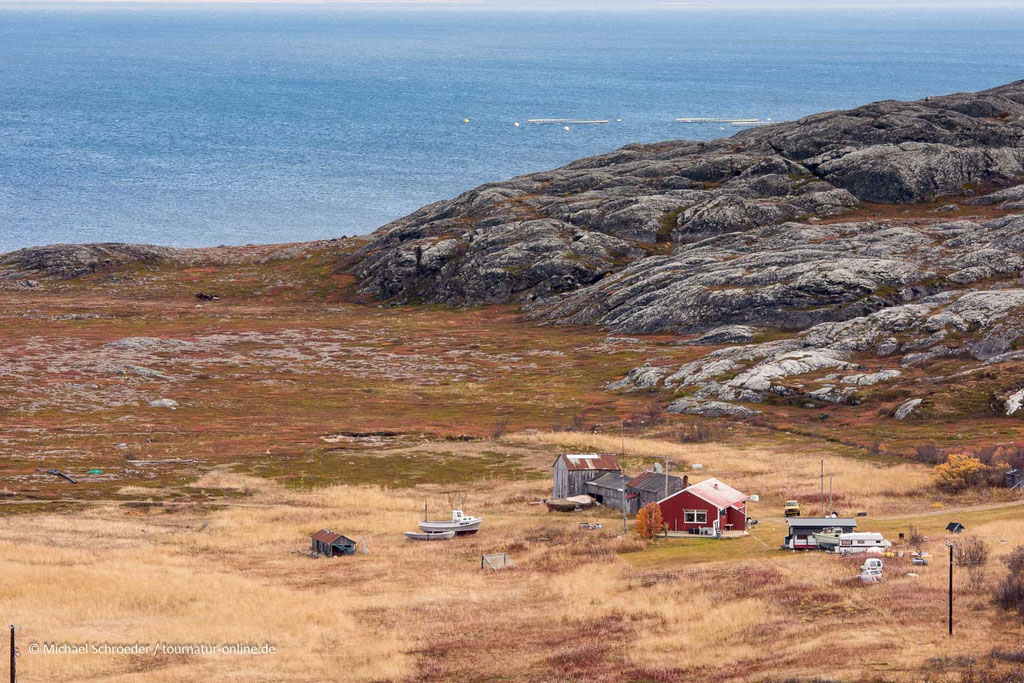 Die kleine Straße endet im Örtchen Bugøynes. Gegründet von Norwegern wurde der nun verlassene Ort im 18. Jahrhundert von Finnen besiedelt. Auch heute noch ist die Muttersprache der meisten der nur etwa 250 Einwohner Finnisch, so dass Bugøynes auch "Klein-Finnland" genannt wird.