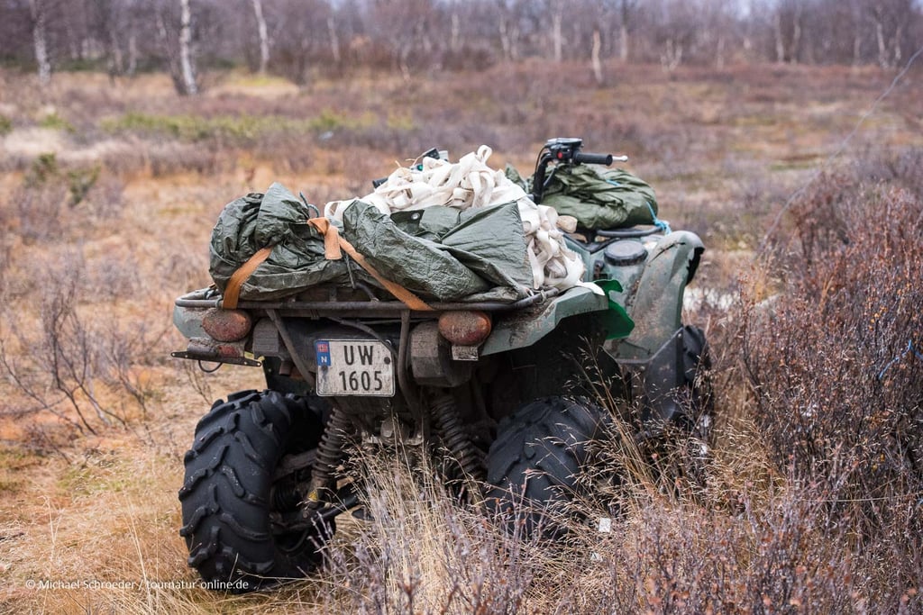 Eine direkte Weiterfahrt in Richtung ist hier nicht möglich, da es im auch Fjell (Norwegen) oder Tunturi (Finnland) genannten unzugänglichen Bergland, das zudem in großen Teilen als Wildnis-Gebiet geschützt ist, keine Straßen gibt. Wir folgen daher der Straße 92 zur E45 und fahren entgegen unserer eigentlichen Route erst einmal gen Süden in Richtung Finnland.