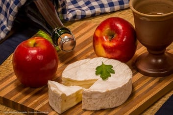 Calvados, Cidre und Camembert werden oft als die drei große „C“ der Normandie bezeichnet. Auch wenn die Region kulinarisch mehr zu bieten hat, so sind dies sicher deren bekanntesten Produkte. Sowohl der Apfelbranntwein Calvados als auch der schäumende Cidre werden aus den hier angebauten Äpfeln hergestellt, wobei es sich bei dem Begriff „Calvados“ um eine geschützte Herkunftsangabe handelt. Den Cidre gibt es von brut (trocken) bis doux (süß), wobei die süße Variante einen geringeren Alkoholgehalt aufweist als die trockene. Gerne wird er zum Essen getrunken.