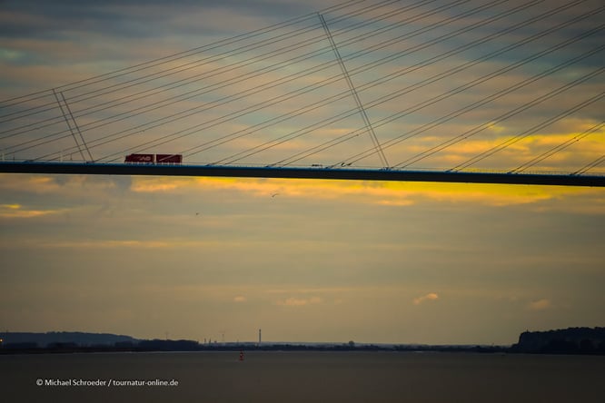 Le Harve und Honfleur verbindet die den Fluss Seine überspannende Brücke „Pont de Normandie“, die im Jahr 1995 eingeweiht wurde. Mit einer Spannweite von 856 m ist sie die größte Schrägseilbrücke Europas. Die Durchfahrtshöhe für Schiffe beträgt mehr als 50m und entsprechend steil sind die Zufahrten zur Brücke. Für motorisierte Fahrzeuge ist die Überquerung mautpflichtig. Fußgänger und Fahrradfahrer können die Brücke kostenfrei benutzen, dies ist aber aufgrund des sehr schmalen Fuß- bzw. Fahrradweges direkt neben der Fahrbahn nur unter großer Vorsicht zu empfehlen. Aufgrund ihrer exponierten Lage kann es bei starkem Wind vorkommen, dass die Brücke für LKW gesperrt wird.