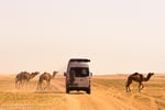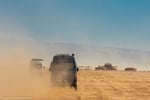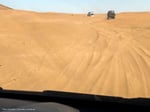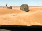 Schon hinter der nächsten Kurve bremst uns aber die Natur aus und wir müssen uns durch puderzuckerfeinen Sand wühlen. Fahren fühlt sich hier teilweise eher an wie Schwimmen und es geht nur im Schritttempo voran. Unser Paul verhält sich auch dank des geringen Luftdrucks sehr gut; im Gegensatz zum Sprinter mit Winterreifen, bleiben weder wir noch Dennis hängen. Sowohl die AT-Reifen als auch unser Allrad-Sprinter bestehen den Wüsten-Test. Ein Freischaufeln bleibt aber heute auch Phil und Nadja erspart, rückwärtsfahren und mit mehr Schwung "nochmal probieren" genügt auch für sie, um weiterzukommen.