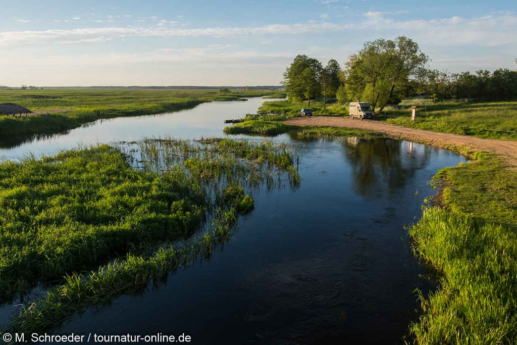 Die unglaubliche Weite der Flusslandschaft der heute weitgehend unregulierten Narew wird für den Besucher über Stege erschlossen. Sowohl der Steg am Informationszentrum in Kurowo, der auf nur etwa einem Kilometer durch verschiedene Vegetationszonen des Gebiets führt, wie auch der etwa 7 km lange Rundweg bei Waniewo lohnen einen Besuch. Der große Reichtum des Tals ist seine Vogelwelt; 230 Vogelarten wurden nachgewiesen, von denen 150 hier brüten. Wir sind vor allem von dem Gebiet um Waniewo begeistert und verbringen viel Zeit mit dem Beobachten und Fotografieren von diversen Seeschwalbenarten. Leider kommen uns weder Elch noch Biber vor die Linse, obwohl es von beiden hier kleine Bestände geben soll.