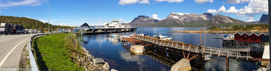Für uns unbemerkt überschreiten wir heute auf einer Fähre, mit einem deutschen Motorradfahrer plaudernd den Polarkreis. Heute Nacht geht für uns das erste Mal seit Wochen wieder die Sonne unter. Da das aber irgendwann zwischen 1 und 3 Uhr nachts passieren wird, werden wir davon wahrscheinlich nichts mitbekommen.