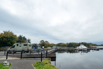 - Stellplatz an der Marina: GPS 54.0204, -7.9413