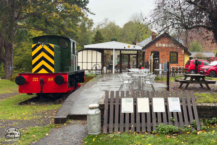 Wir fahren nun zügig gen Süden. An der ehemaligen Bahnstation Erwood Station legen wir aber noch einmal einen Stopp ein. Der Bahnhof wurde 1864 an der Mid Wales Railway eröffnet und 1962 geschlossen. Heute befindet sich in der Station neben einer alten Lokomotive und restaurieren Eisenbahnwagen ein Café.