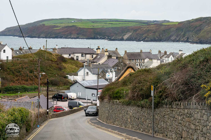 Neben dem großen Fährhafen besitzt Fishguard auch einen kleinen Hafen, der lange Zeit vom Heringsfang geprägt war. Dort erinnert heute ein Hering-Denkmal an die Bedeutung der Fischerei für den Ort. Wir legen am kleinen Parkplatz am Hafen einen kurzen Stopp ein, bevor wir unsere Erkundungstour wieder aufnehmen.