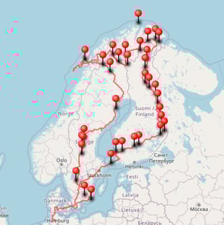Unsere Reise führt uns im Frühjahr über Südschweden, entlang der Ostseeküste (Bottnischer Meerbusen) in den Norden zum Nordkap, anschließend entlang der norwegischen Küste über die Lofoten Richtung Bergen und über Oslo zurück.