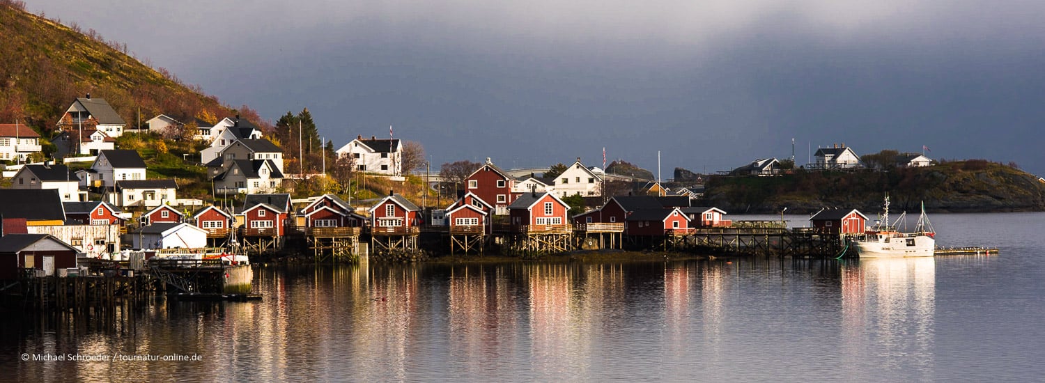 Zumindest die Lofoten sind allerdings schon lange kein Geheimtipp mehr. Dies tut ihrer Schönheit aber keinen Abbruch.Der Kontrast zwischen den tief eingeschnittenen Fjorden und den steil ansteigenden, oft auch im Sommer schneebedeckten Bergen ist beeindruckend. Auch die traditionellen Fischerdörfer mit ihren rot gestrichenen Holzhütten, für die die Inseln bekannt sind, bieten immer wieder neue, attraktive Motive.
