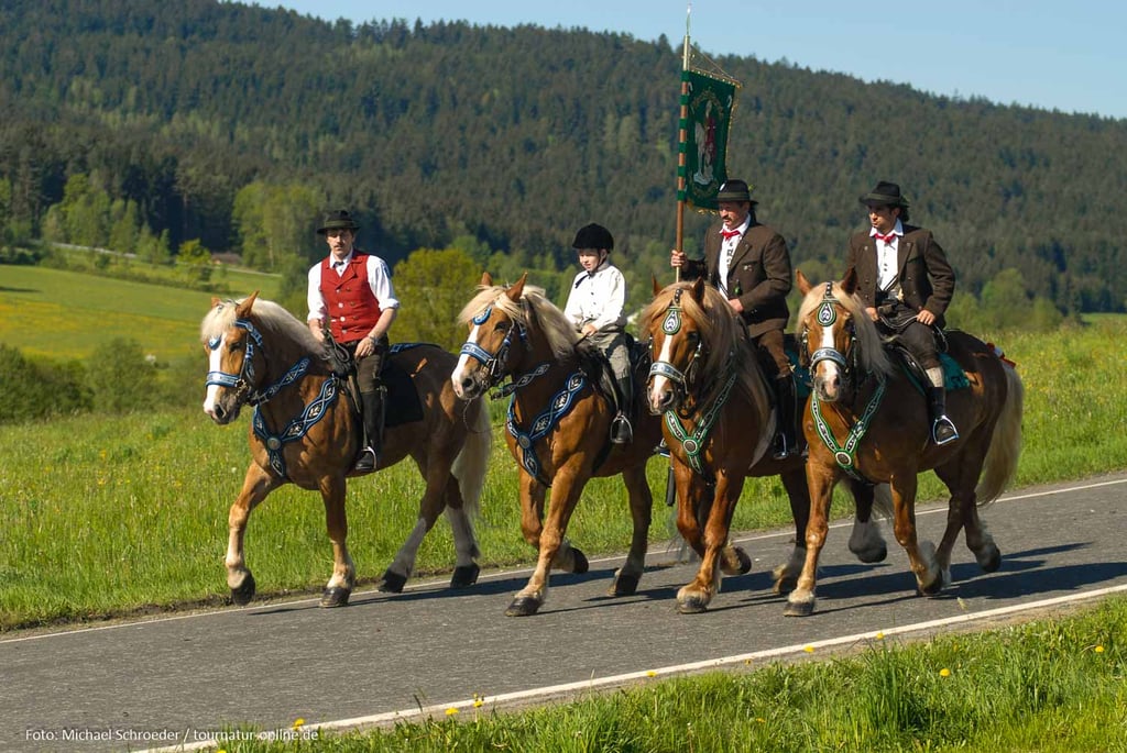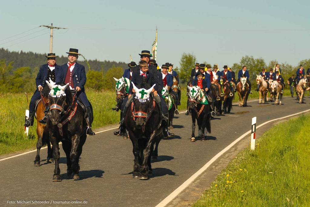 Das bayrische Bad Kötzting in der Oberpfalz ist jedes Jahr zu Pfingsten Schauplatz einer der größten Reiter-Wallfahrten Europas.