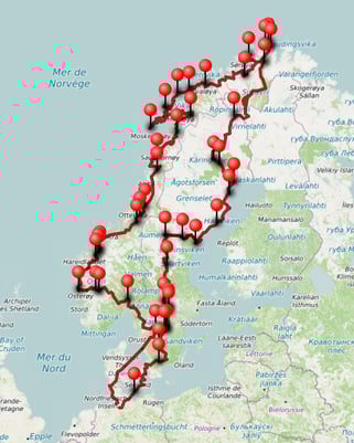 Unsere Reise führt uns im Frühjahr über Südschweden, entlang der Ostseeküste (Bottnischer Meerbusen) in den Norden zum Nordkap, anschließend entlang der norwegischen Küste über die Lofoten Richtung Bergen und über Oslo zurück.