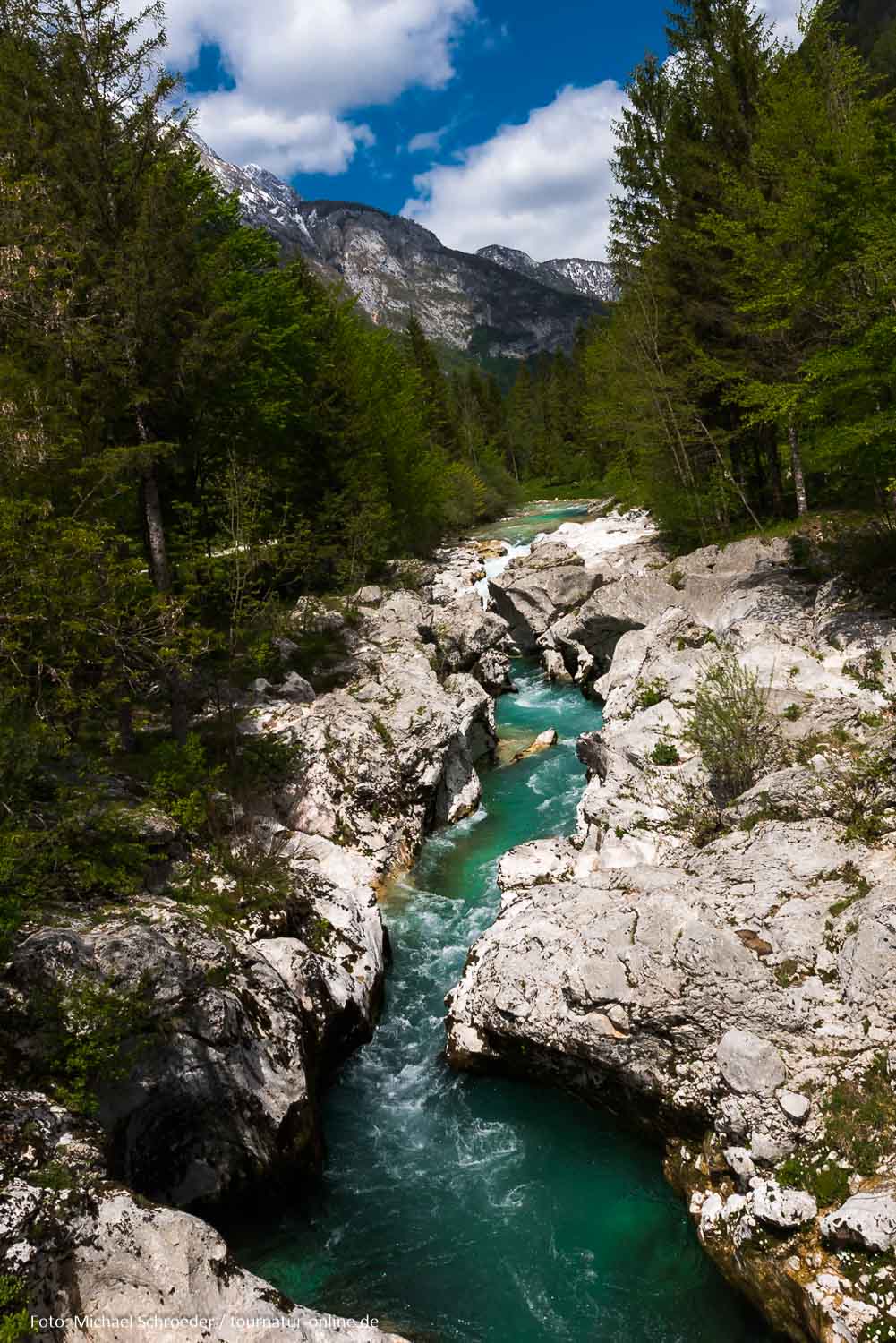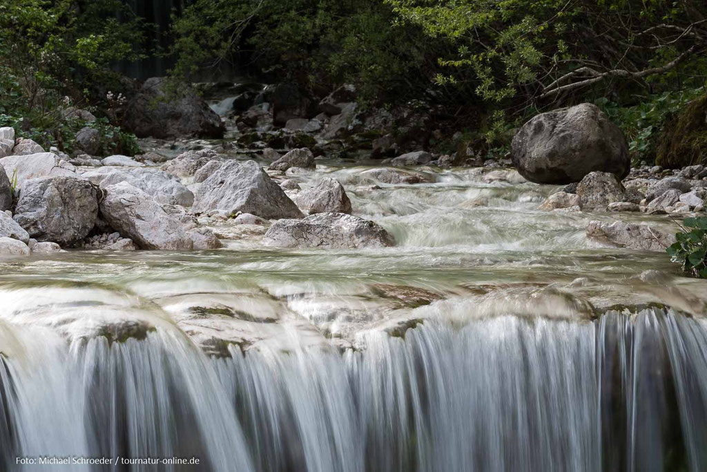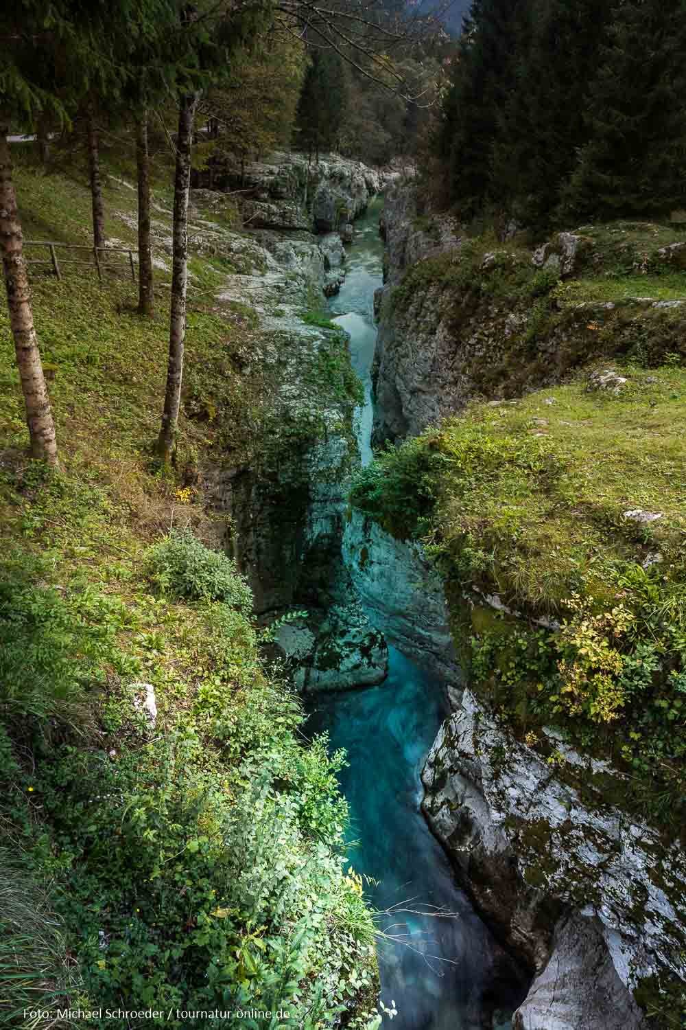Wie ein samaragdfarbenes Band durchzieht der Fluss ein anfänglich breites Tal. Die Farbe des Wassers ist einfach unglaublich und changiert über diverse Blau- und Grüntöne bis hin ins Türkis.
