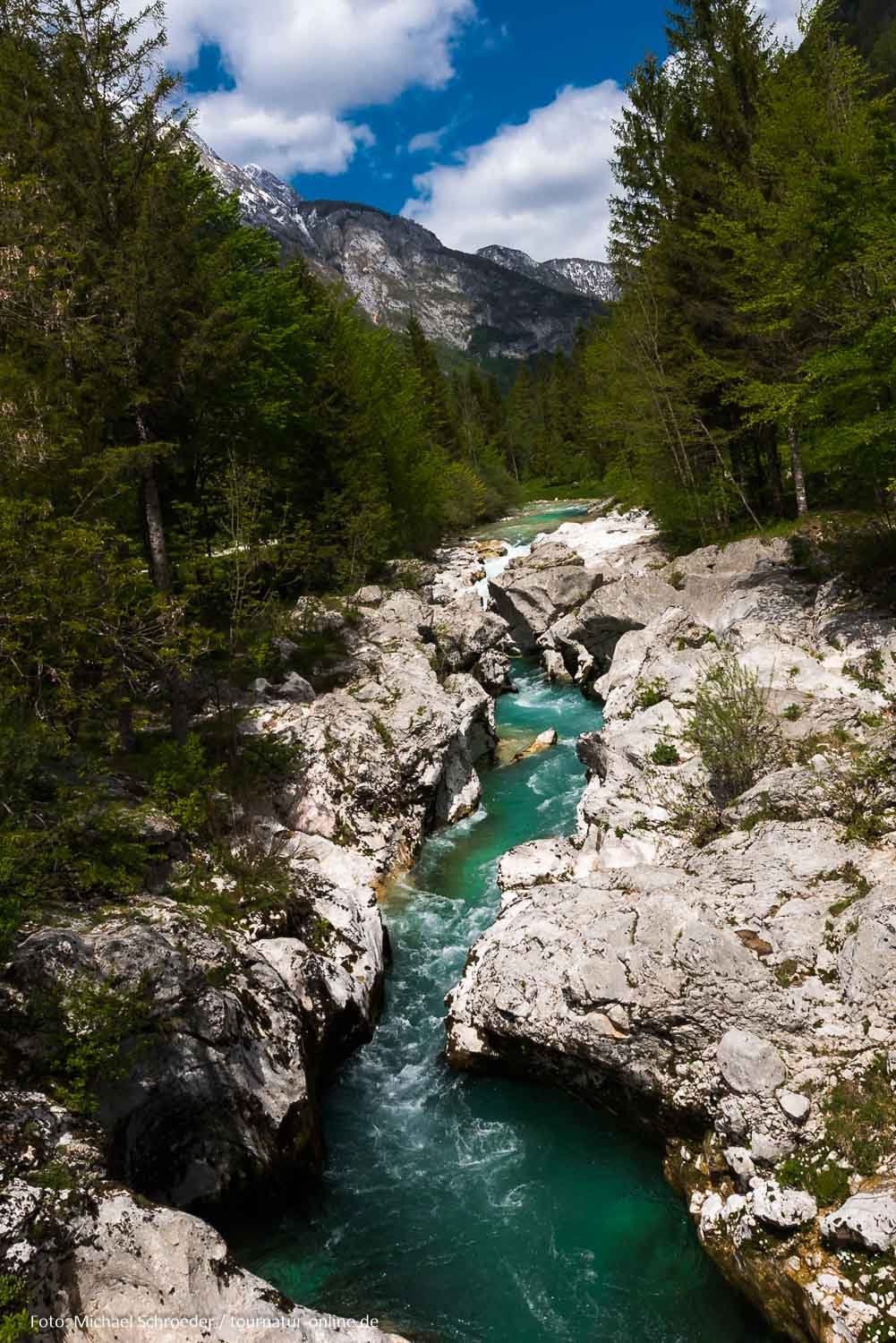 Der Triglav Nationalpark im Nord-Westen Sloweniens in den Julischen Alpen an der Grenze zu Italien und Österreich. Der Park ist einer der ältesten Nationalparks Europas und der einzige Nationalpark Sloweniens. Durch den Nationalpark fließt der 137 km lange Fluss Soča. Das Wasser ist eiskalt, glasklar und schimmert auch bei bedecktem Himmel türkisblau und smaragdgrün.